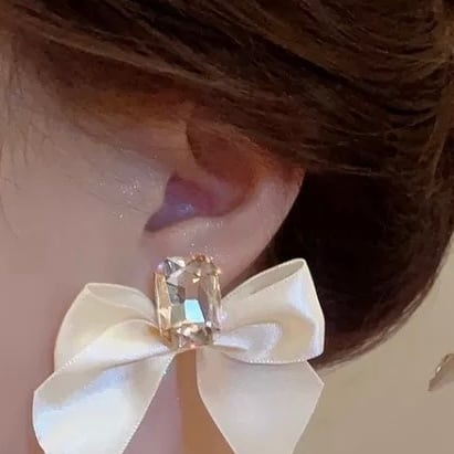 顔まわりに華やかさをプラスする、大粒クリスタル×サテンリボンのフレンチガーリーなピアス♡