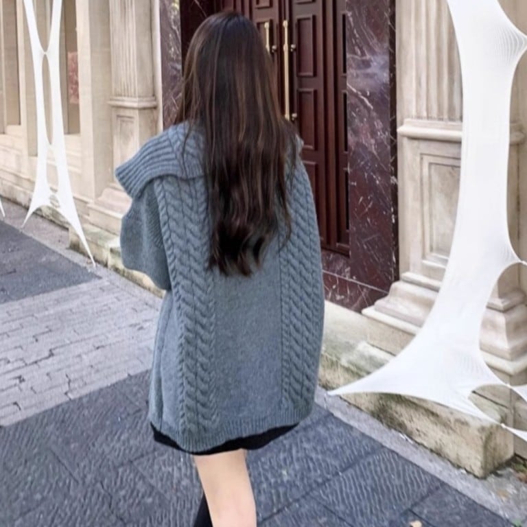 たっぷりとした編み地と大きめフードが、リラックス感と可愛さを両立させるざっくりニットコート。