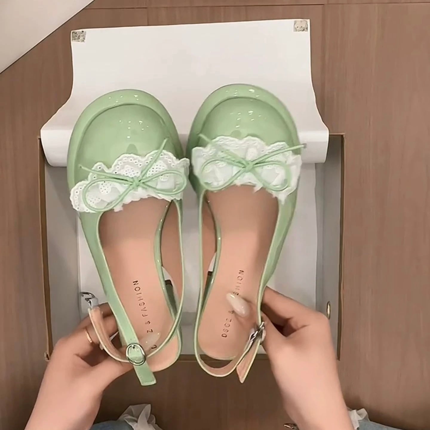 淡いピンクに繊細レースとリボンを添えて、とびきりガーリーな足元に。
