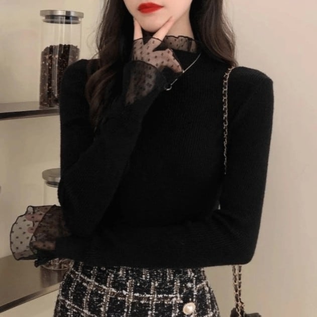 フェミニンなアクセントで、シンプルなボトムスと合わせても華やかさをプラス。