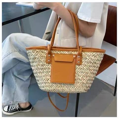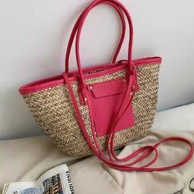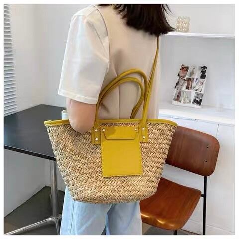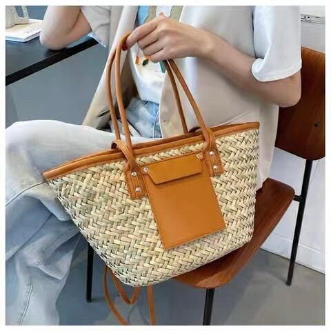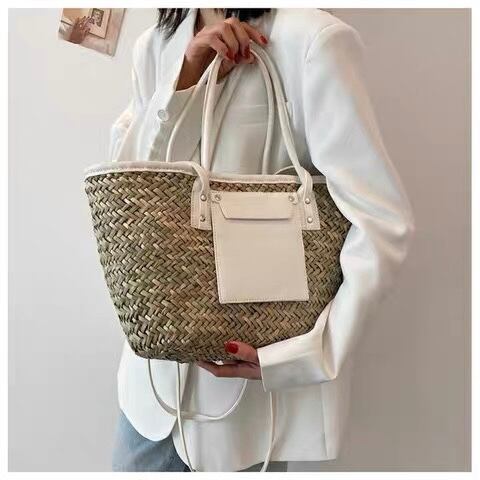 編み込みデザインが涼しげなナチュラルかごバッグ。