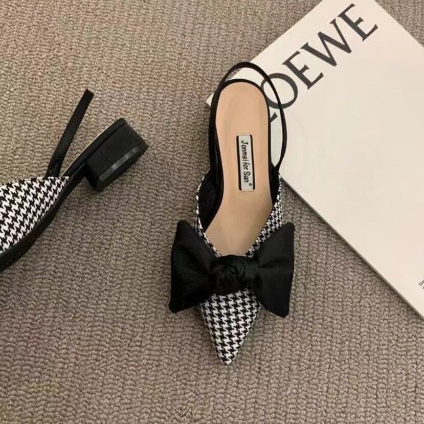 大きなリボンが視線を惹きつけるスリングバックパンプス。