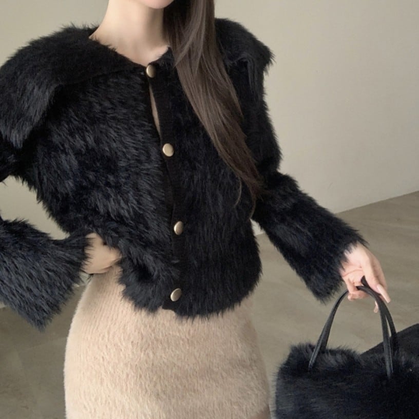ホワイトファーカーディガン PA00106