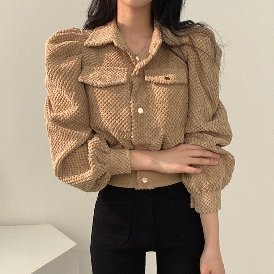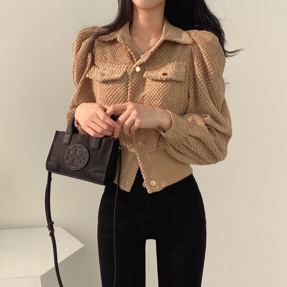 程よいボリュームスリーブで女性らしさをプラスしつつ、着回しやすいベーシュカラーでデイリーに大活躍。
