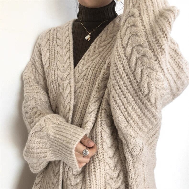ボリューム感のあるケーブル編みが冬らしい主役級カーデ。