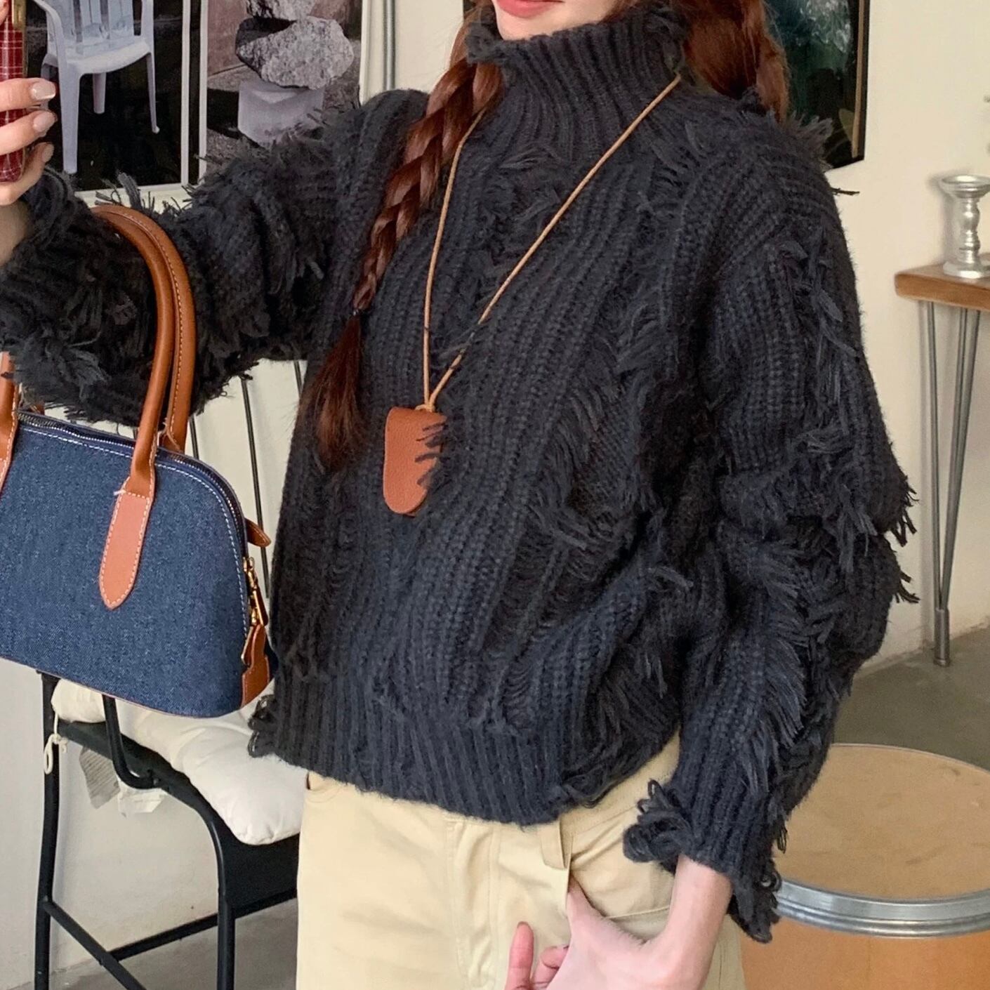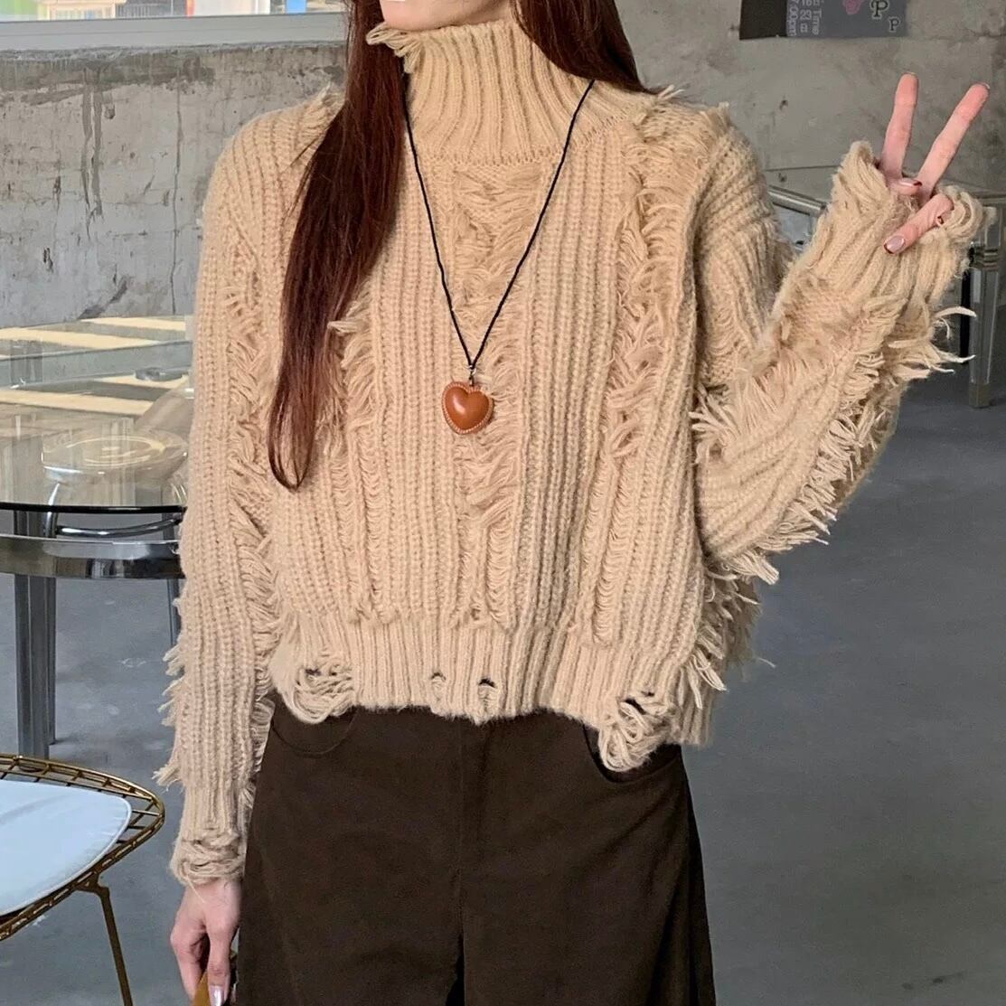 こなれ感たっぷりのフリンジデザインで、ざっくり可愛いニット。