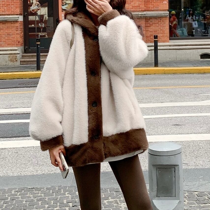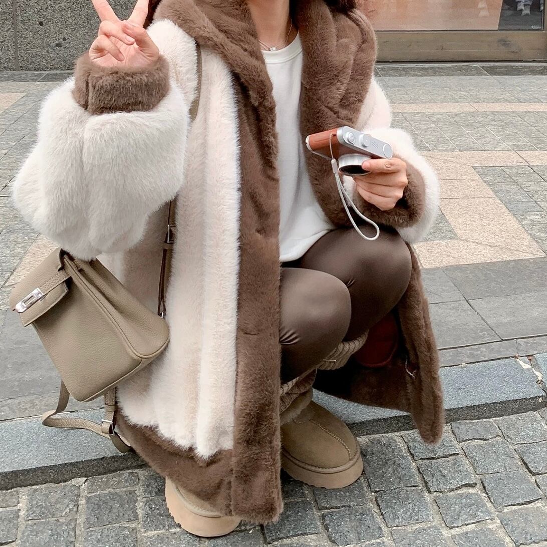 ショコラみたいな甘い配色が愛おしいふわもこアウター。