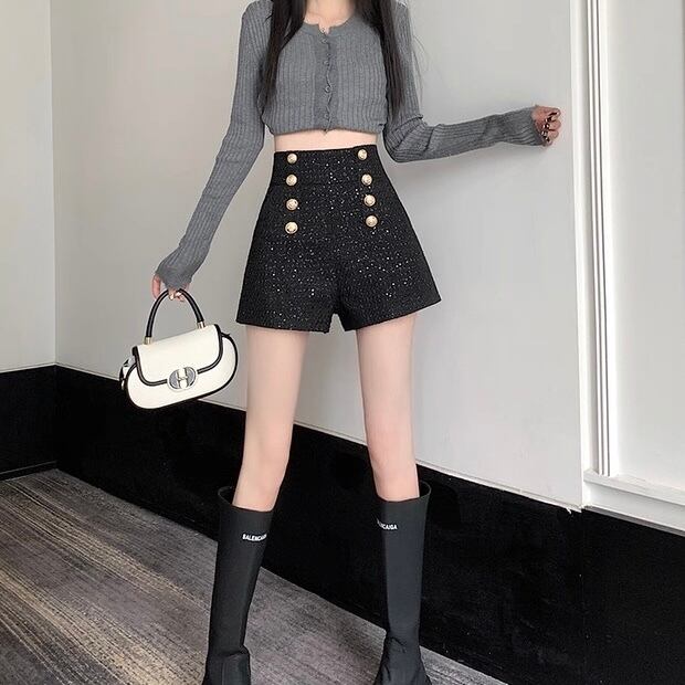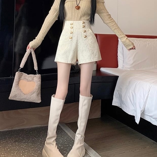 ダブルボタンハイウェストショートパンツ PA00001