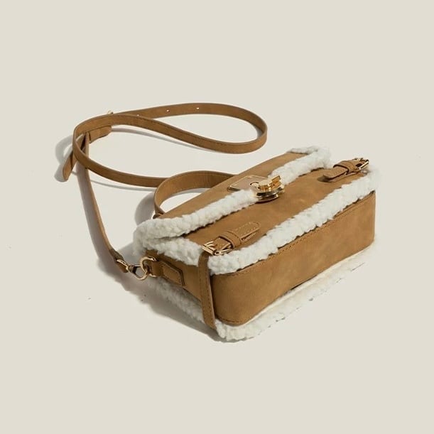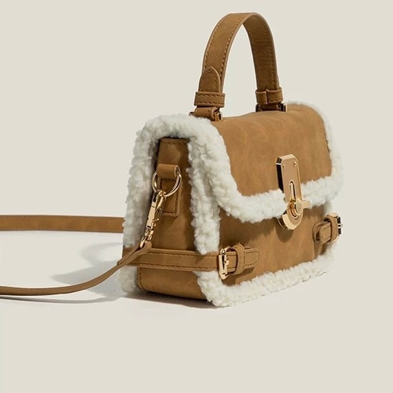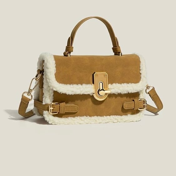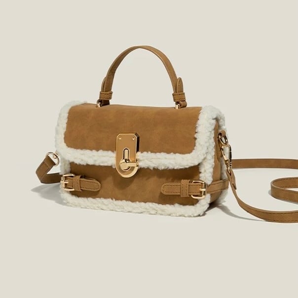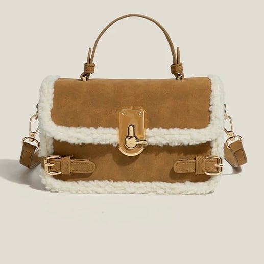 配色のトリムと金具デザインが目を惹くハンドバッグです。