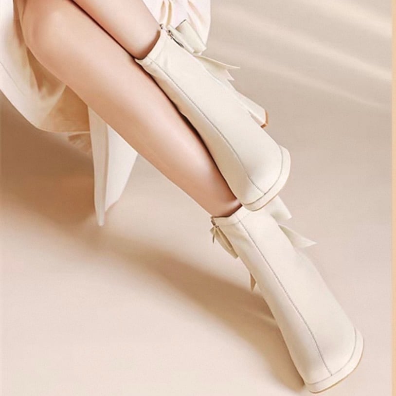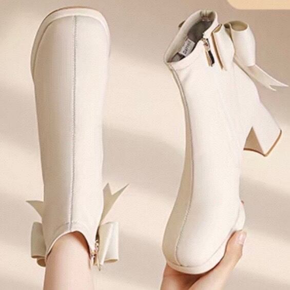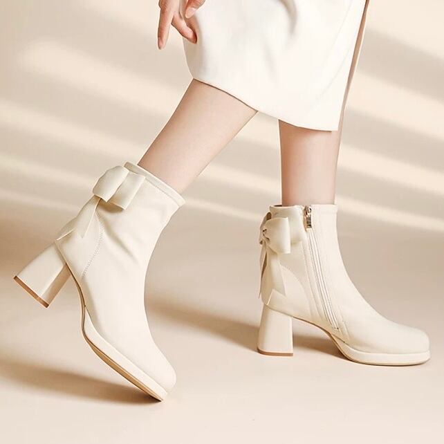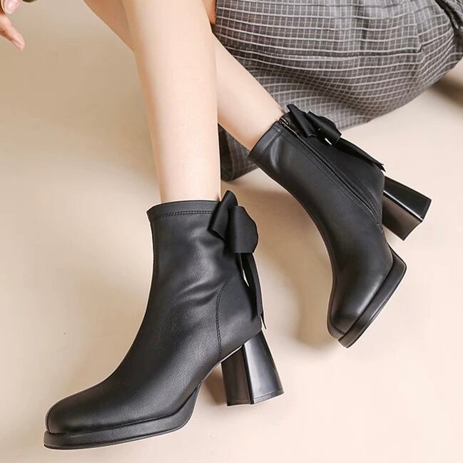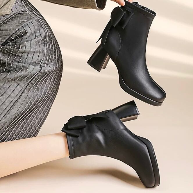後ろ姿まで可愛い、大きめリボンの上品ショートブーツ!