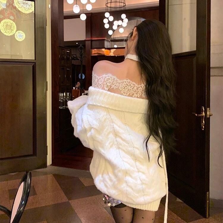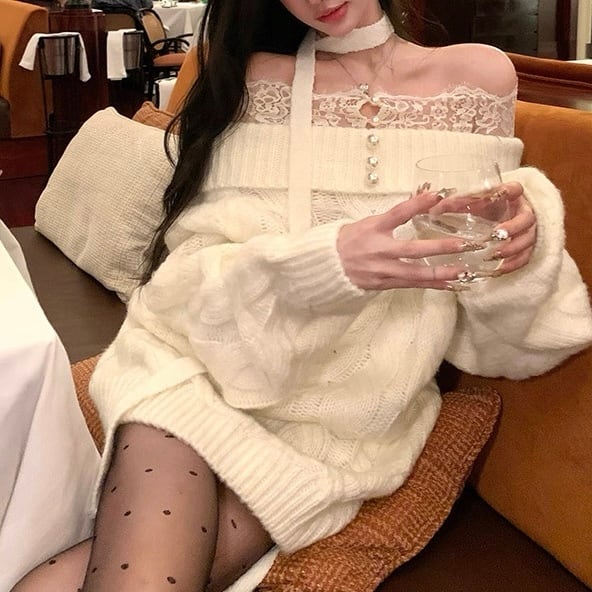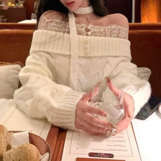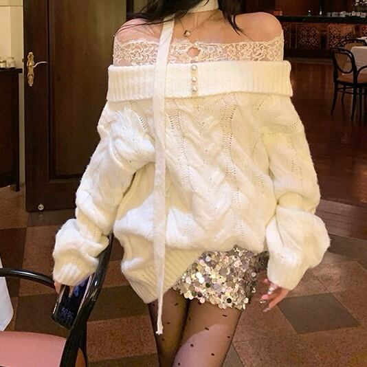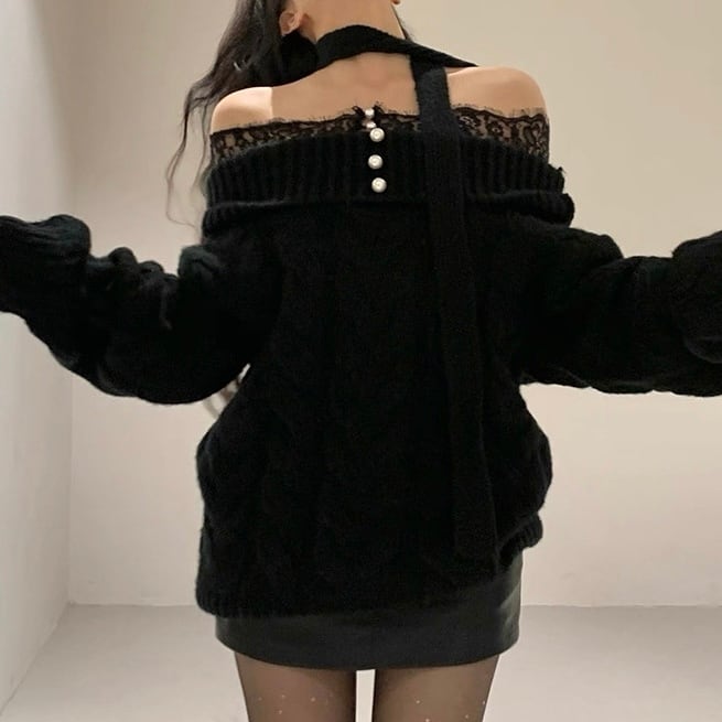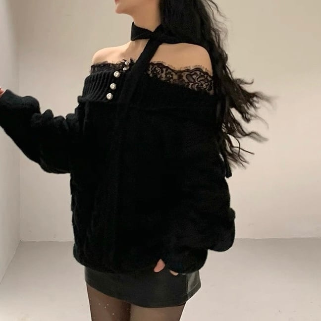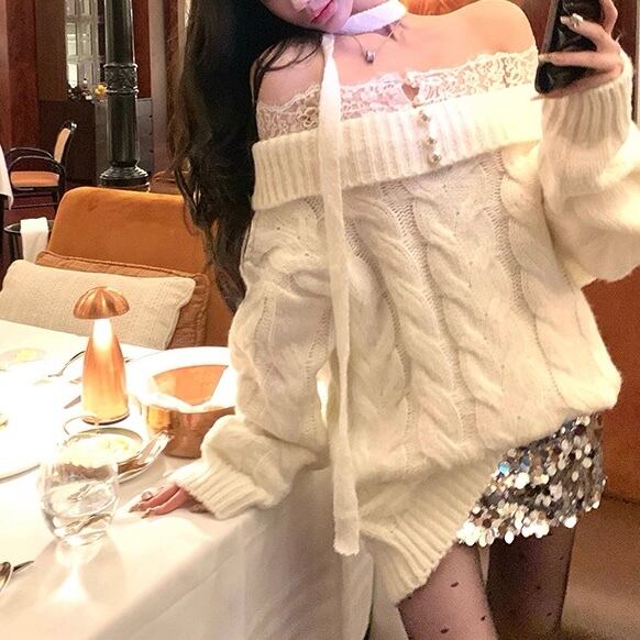 レースショルダー×スパンコールセーター 2col PA00601