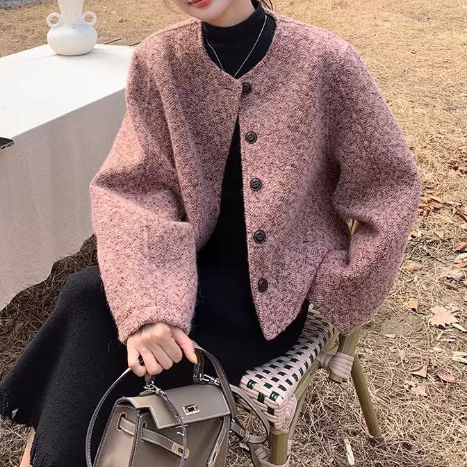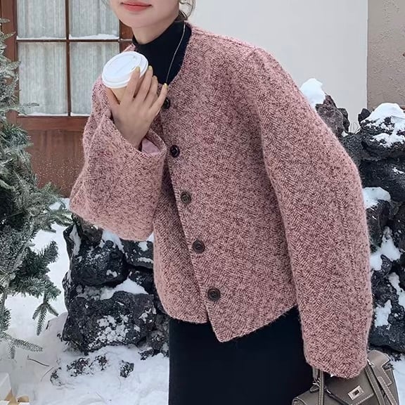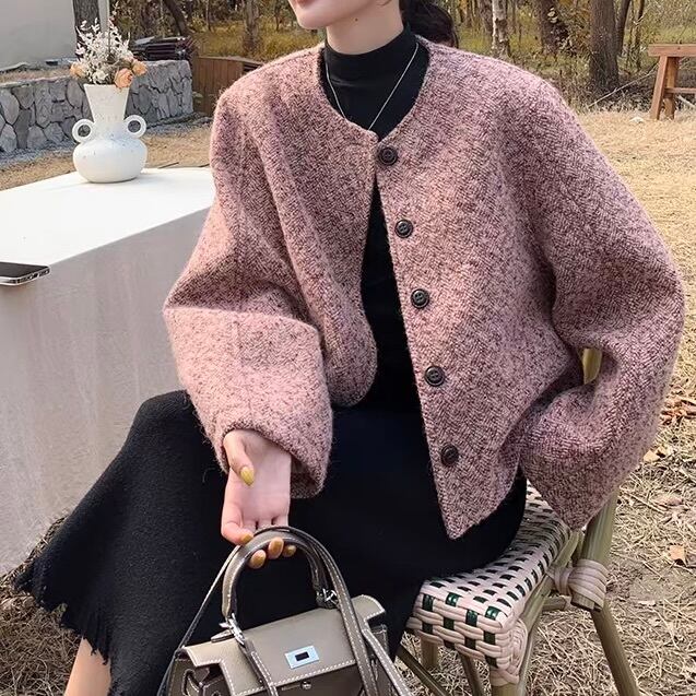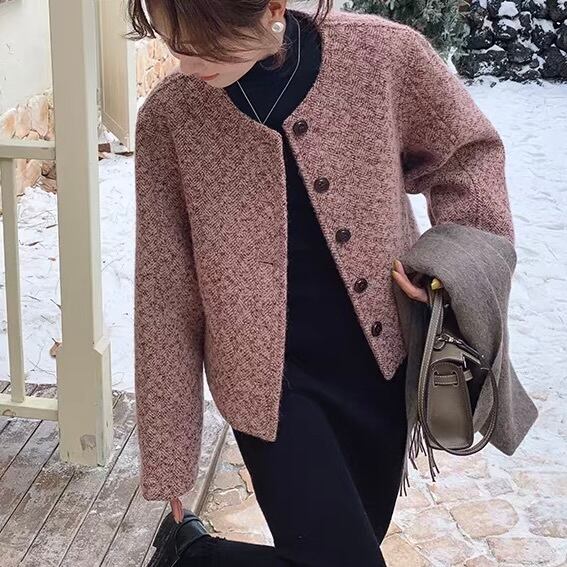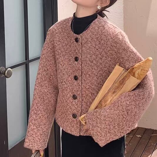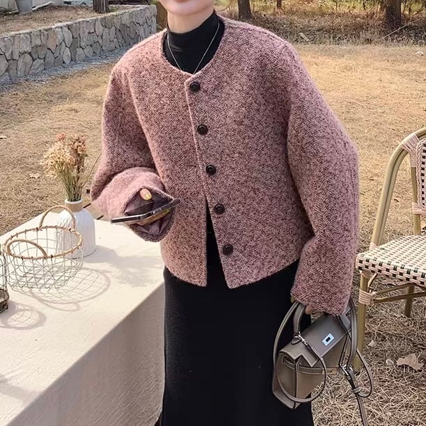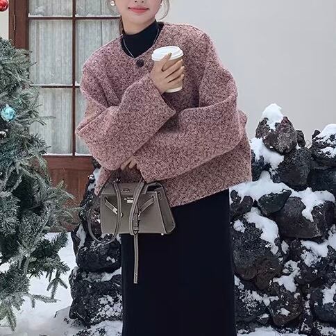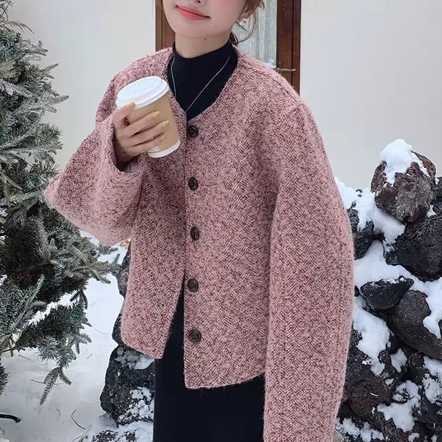 やわらかなミックスカラーが可愛い大人のツイードコート。