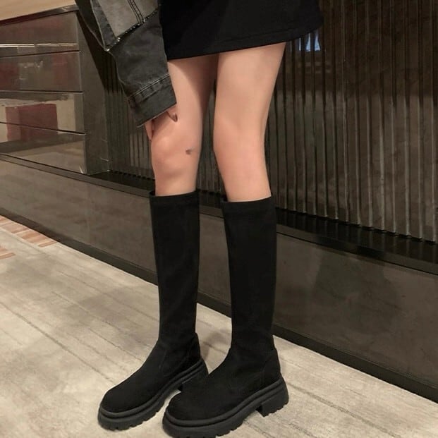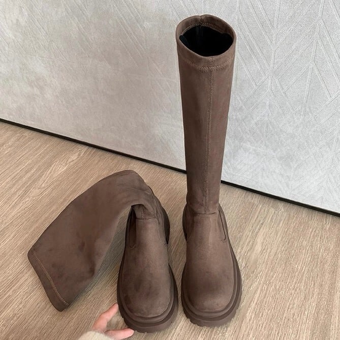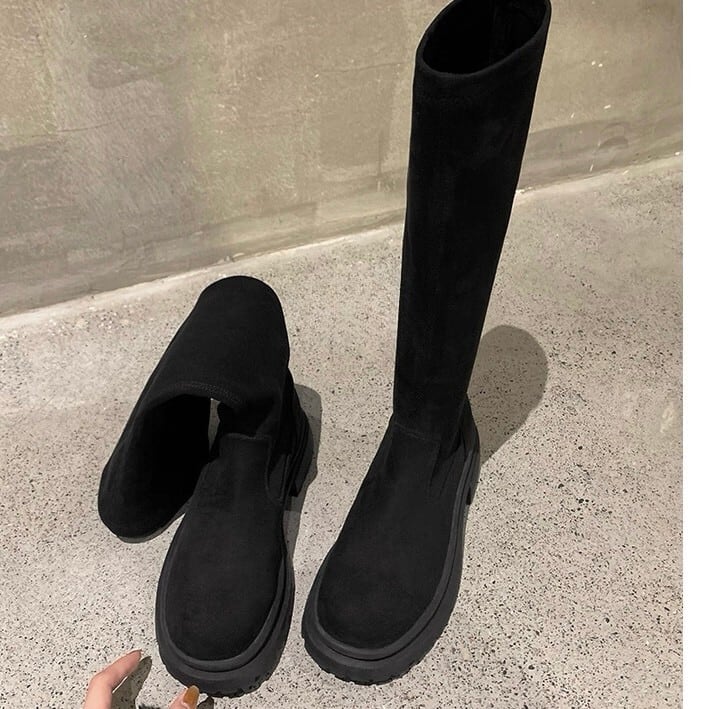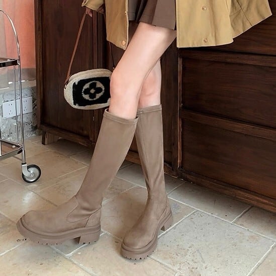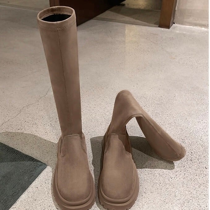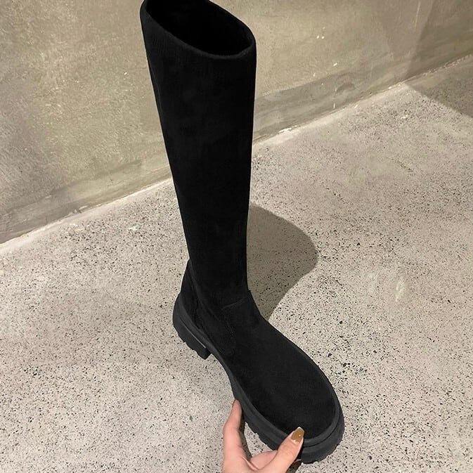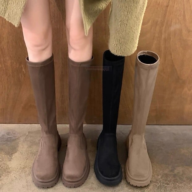 シルエットが綺麗に見えるやわらか素材のロングブーツ。