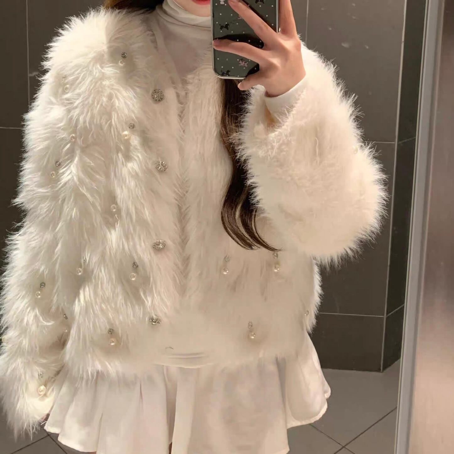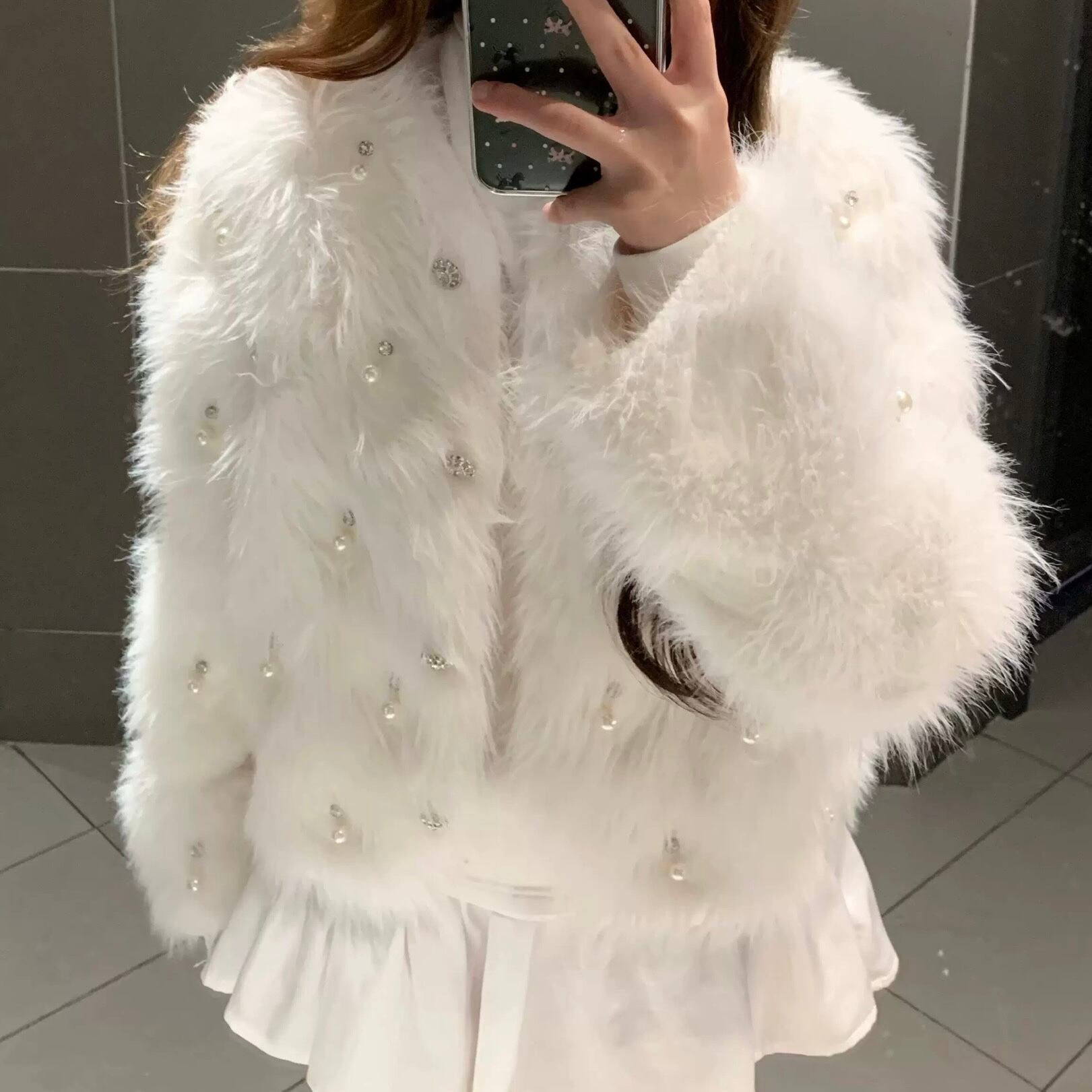 ふわふわフェザーにパールを散りばめた贅沢デザイン。