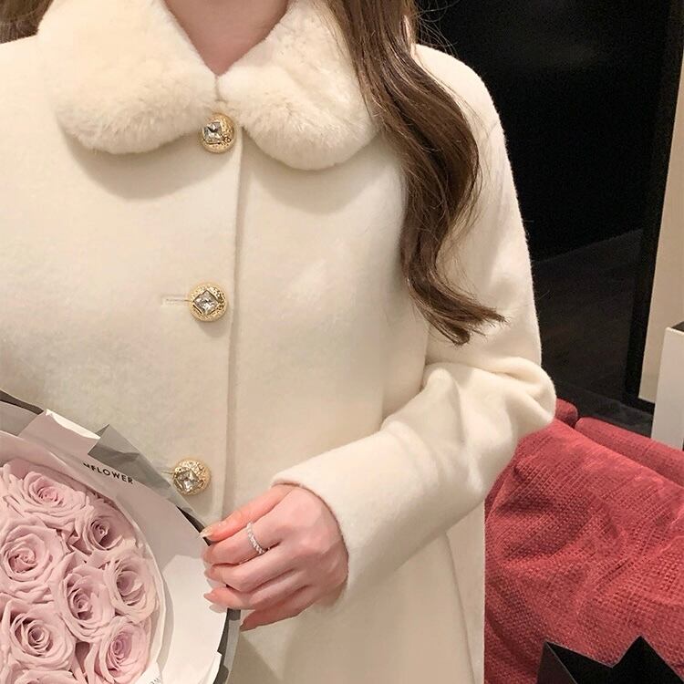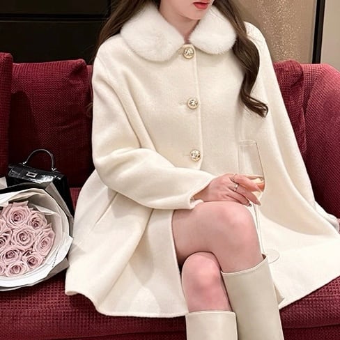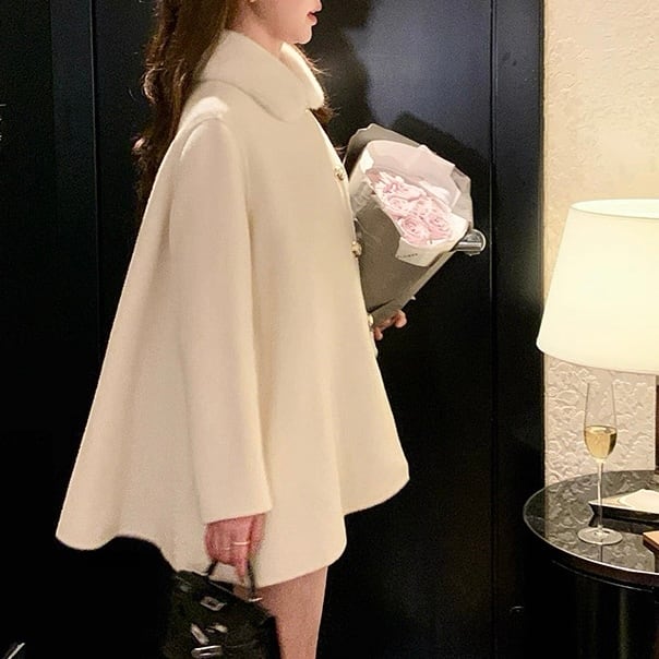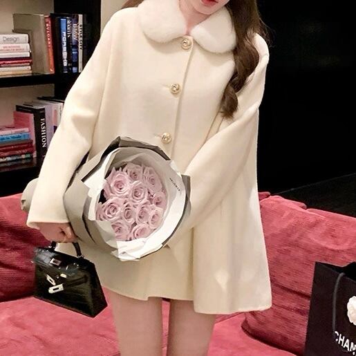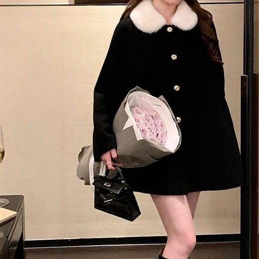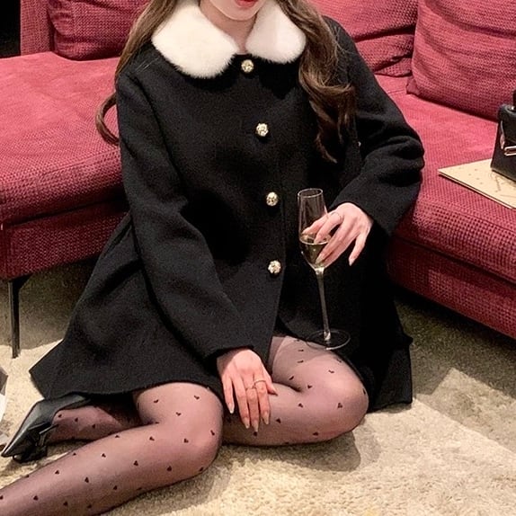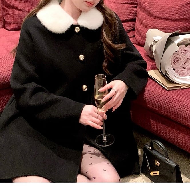 白襟×金ボタンの組み合わせで、上品さと可愛らしさを両立。