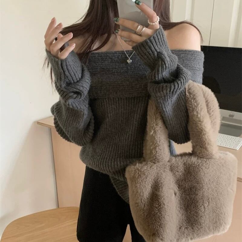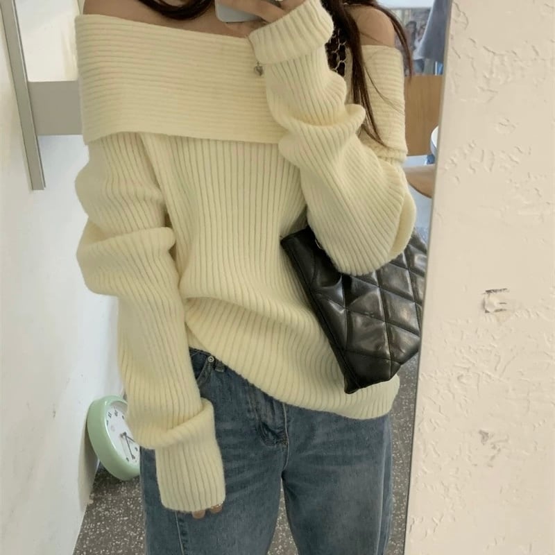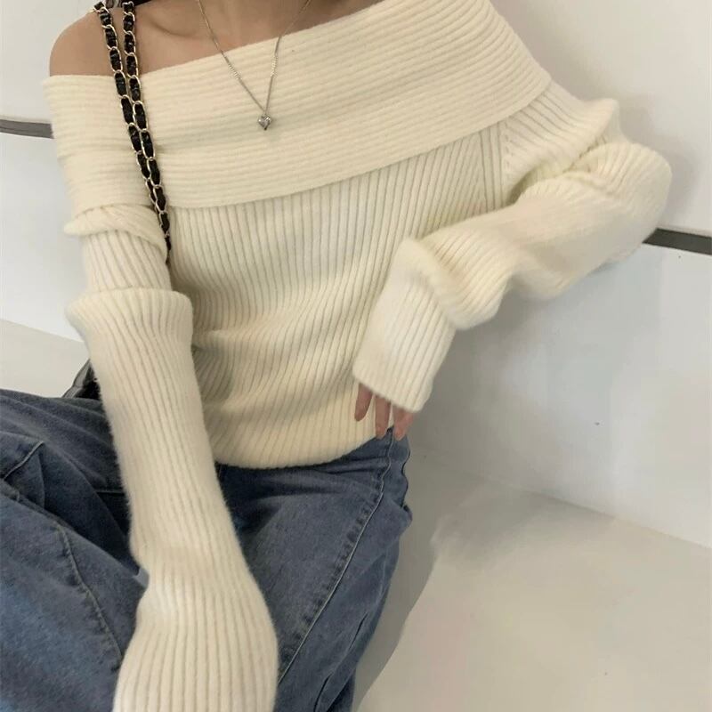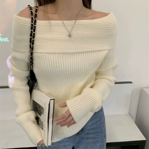 デコルテラインを綺麗に見せるオフショルデザイン。