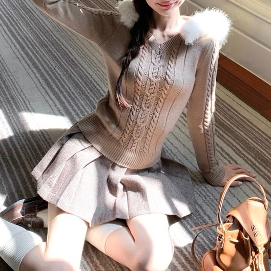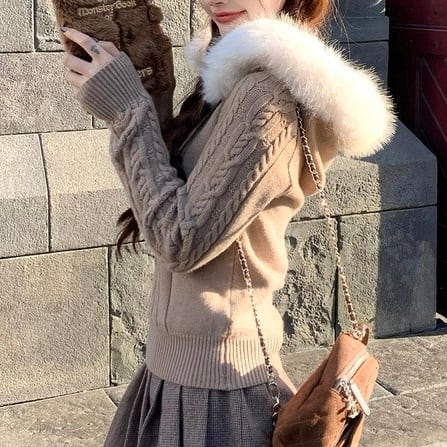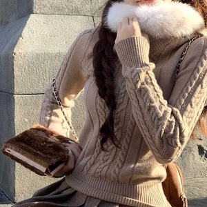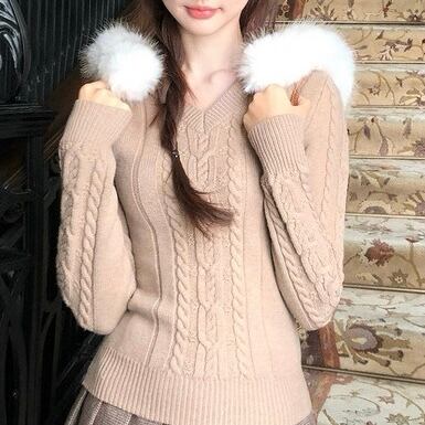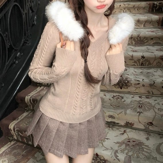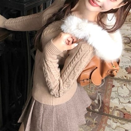 ふわもこファーポイントケーブルニット PA00032